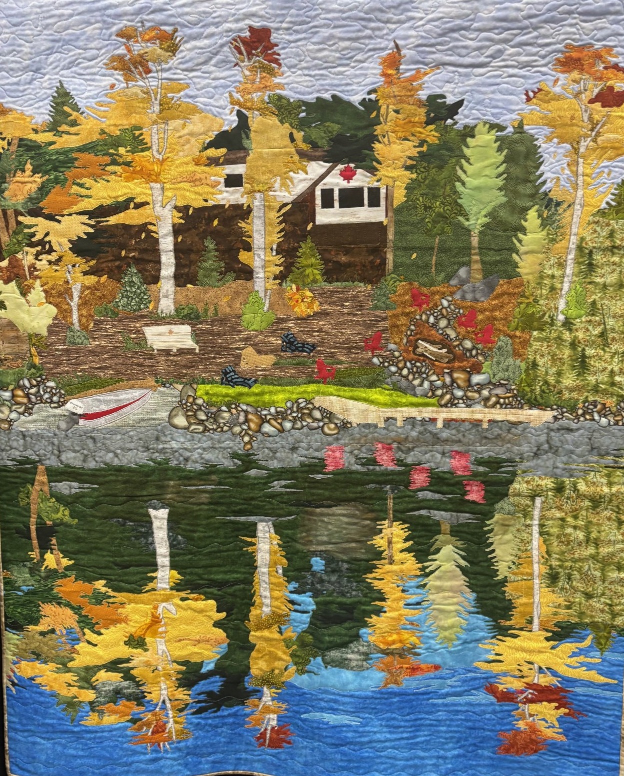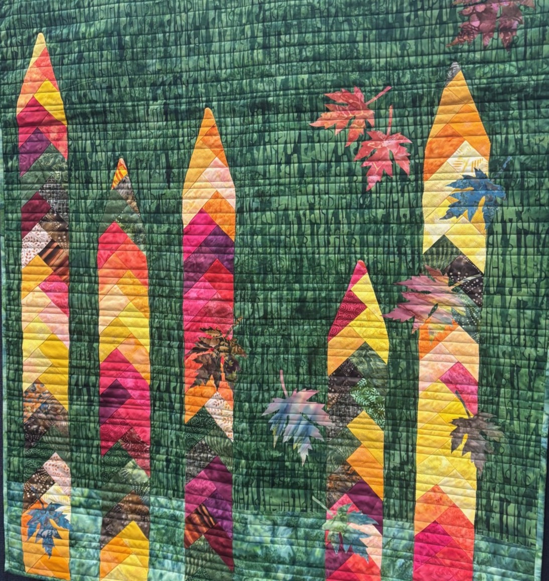 “Fall in Ontario showcased seventeen quilts, representing everyone from beginner quilters to experienced Quilt Canada winners. The collection featured a wide range of styles — piecing, appliqué, pixel quilts, landscapes, traditional, and paper piecing.