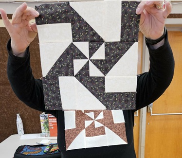 There are 12 different blocks that Sandi will be showing. To make one block you will need one 10” square of background fabric and one 10” square of a colour or print fabric for each block you would like to do.